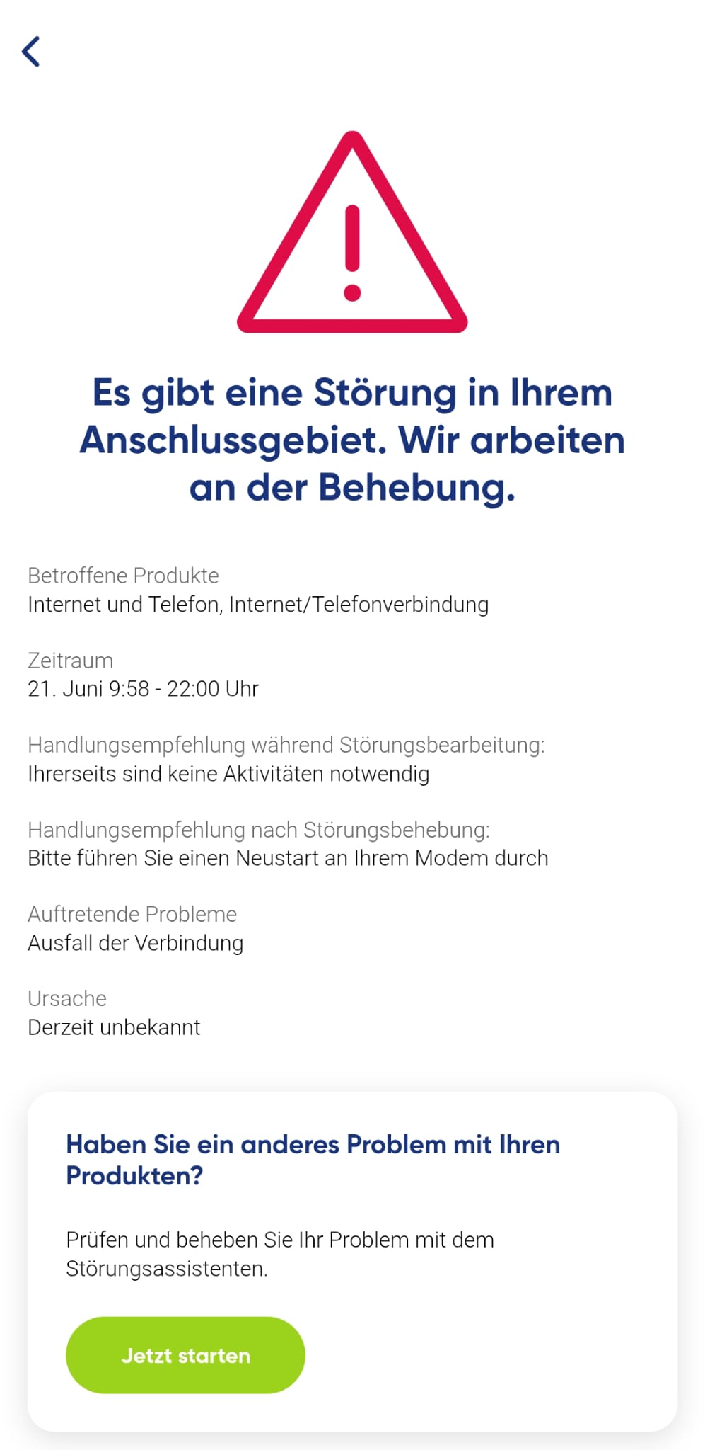 Ja habe ich heute wieder und die schicken wen raus da es mehrere Meldungen gibt, die vermuten Großstörung