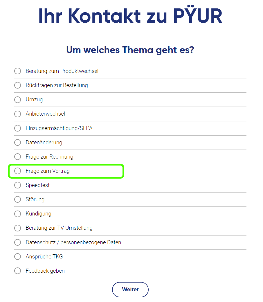 3. "Frage zum Vertrag" wählen