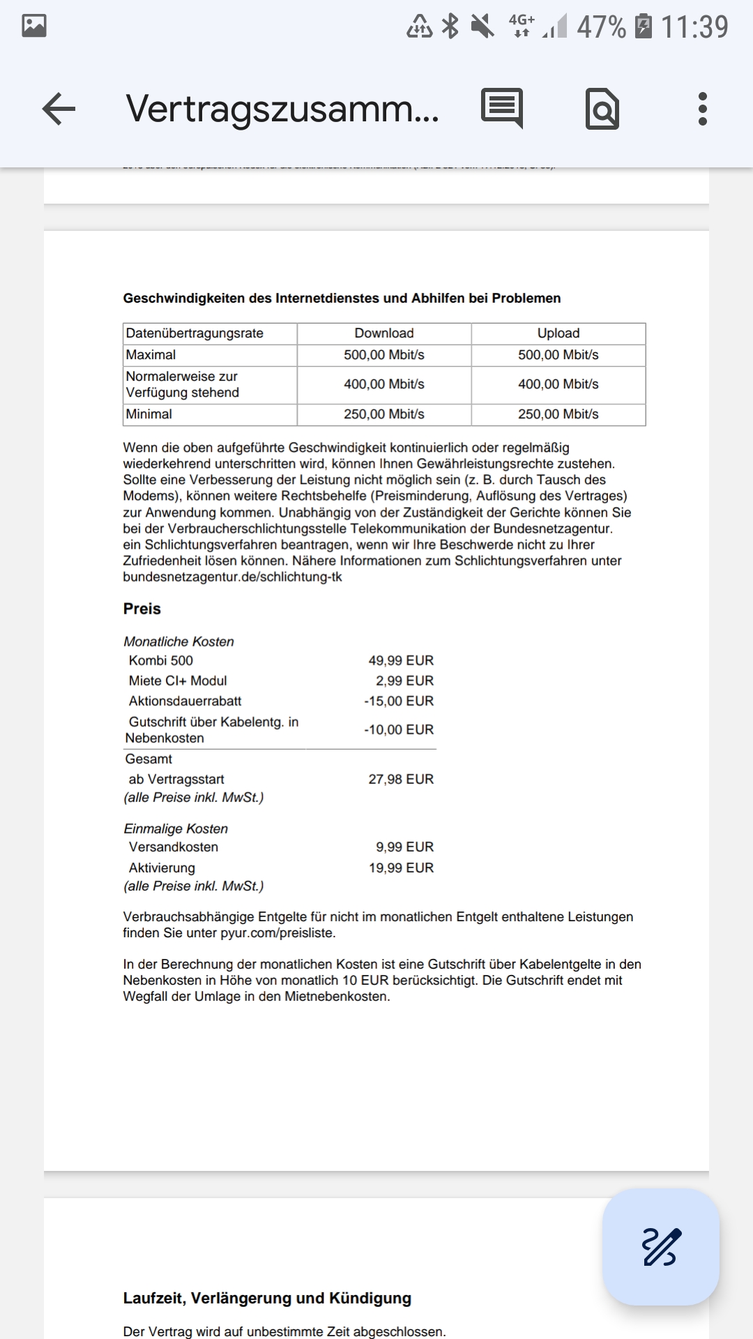 Edit: ich habe den Vertrag und die angehängte Produktbeschreibung nochmal gelesen, aber kein Wort davon, was für ein Abschluss das ganze ist. Kombi 500 (Ethernet) steht da nur. Ich hätte mir da wirklich mehr Informationsmaterial gewünscht