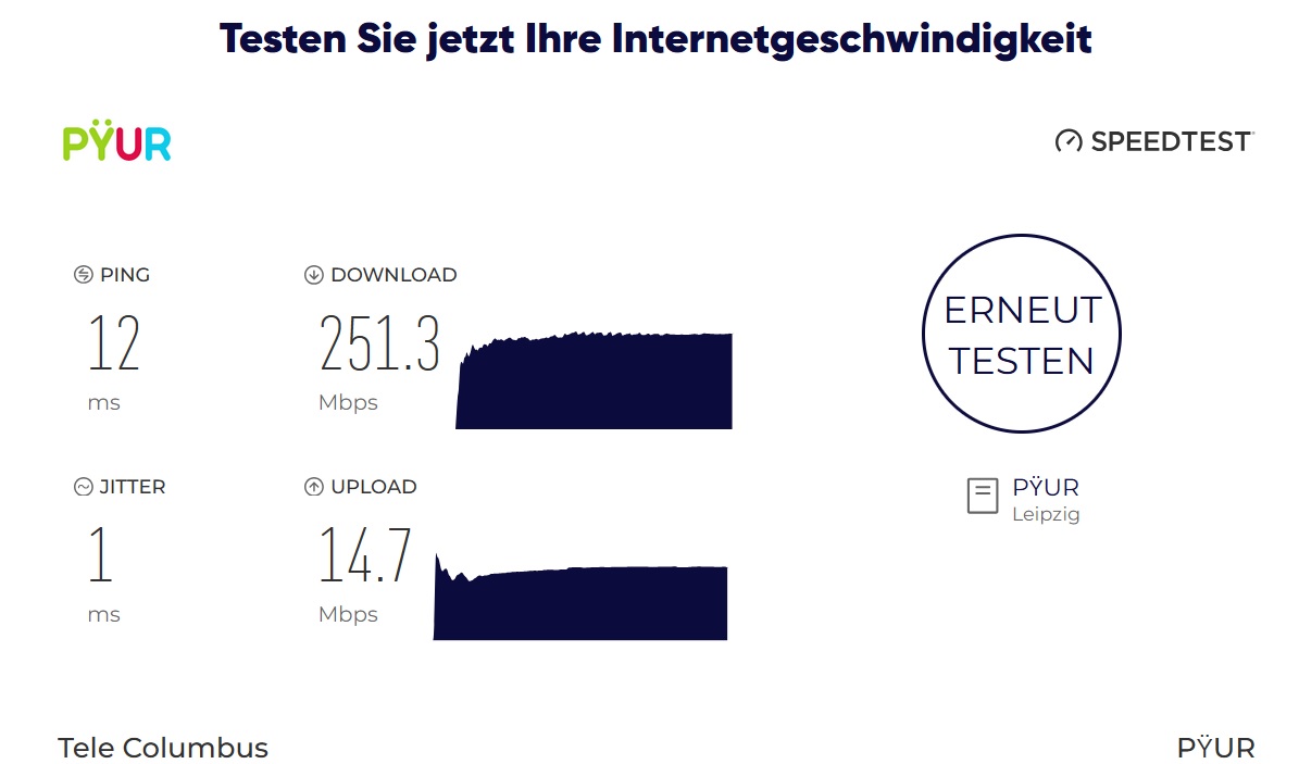 Was mich interessieren würde, ob es generell bei TV-Kabel von Pyur einen höhere Latenz gibt, als über DSL der üblichen Anbieter (Telekom, Vodafone, O2 etc.). Dazu würde mich interessieren, wie sieht euer Ping aus, wenn Ihr den Speedtest von Pyur ausführt? Bitte schreibt doch dazu mit welchem Anschluss Ihr dies getestet habt.