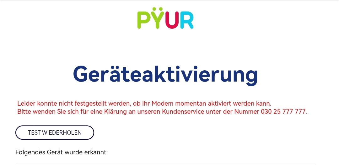 Das Problem ist ausschließlich bei PŸUR zu suchen, aber nicht bei Dir. Der Aktivierungsprozess, der vor einigen Jahren mittels des Aktivierungsportals problemlos lief, ist auf PŸUR-Seite leider wohl aktuell kaputt. Ich kann auch ein Lied davon singen. Bei Nachbarn, die ich ebenfalls bei ihren gekauften Endgeräten unterstützt habe, war es nicht anders.