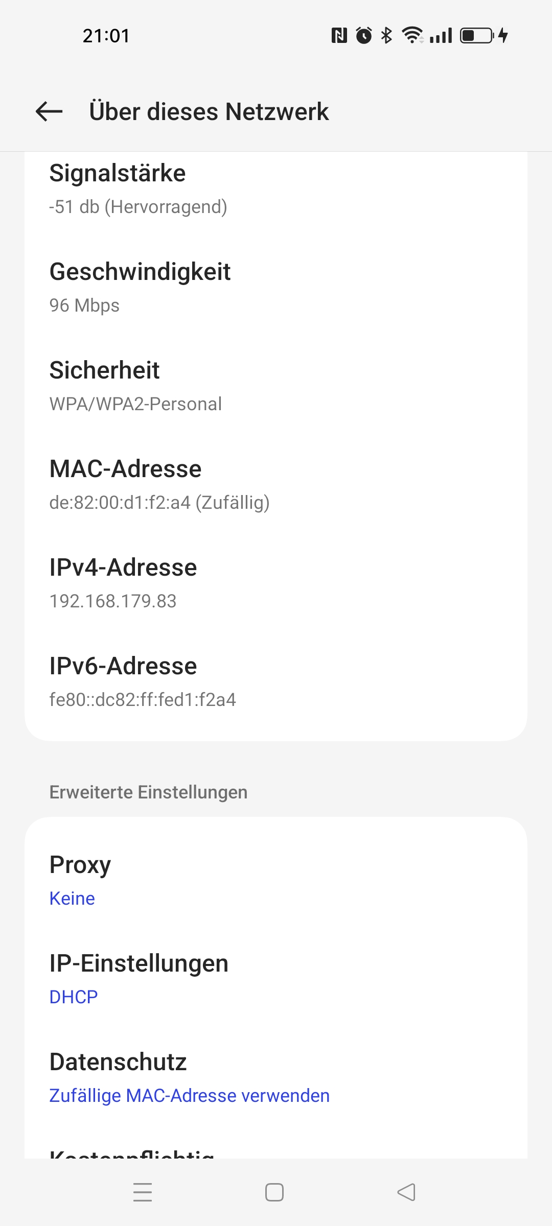 Android - Einstellungen - Wlan guggen ob und welche IP zugewiesen wurde