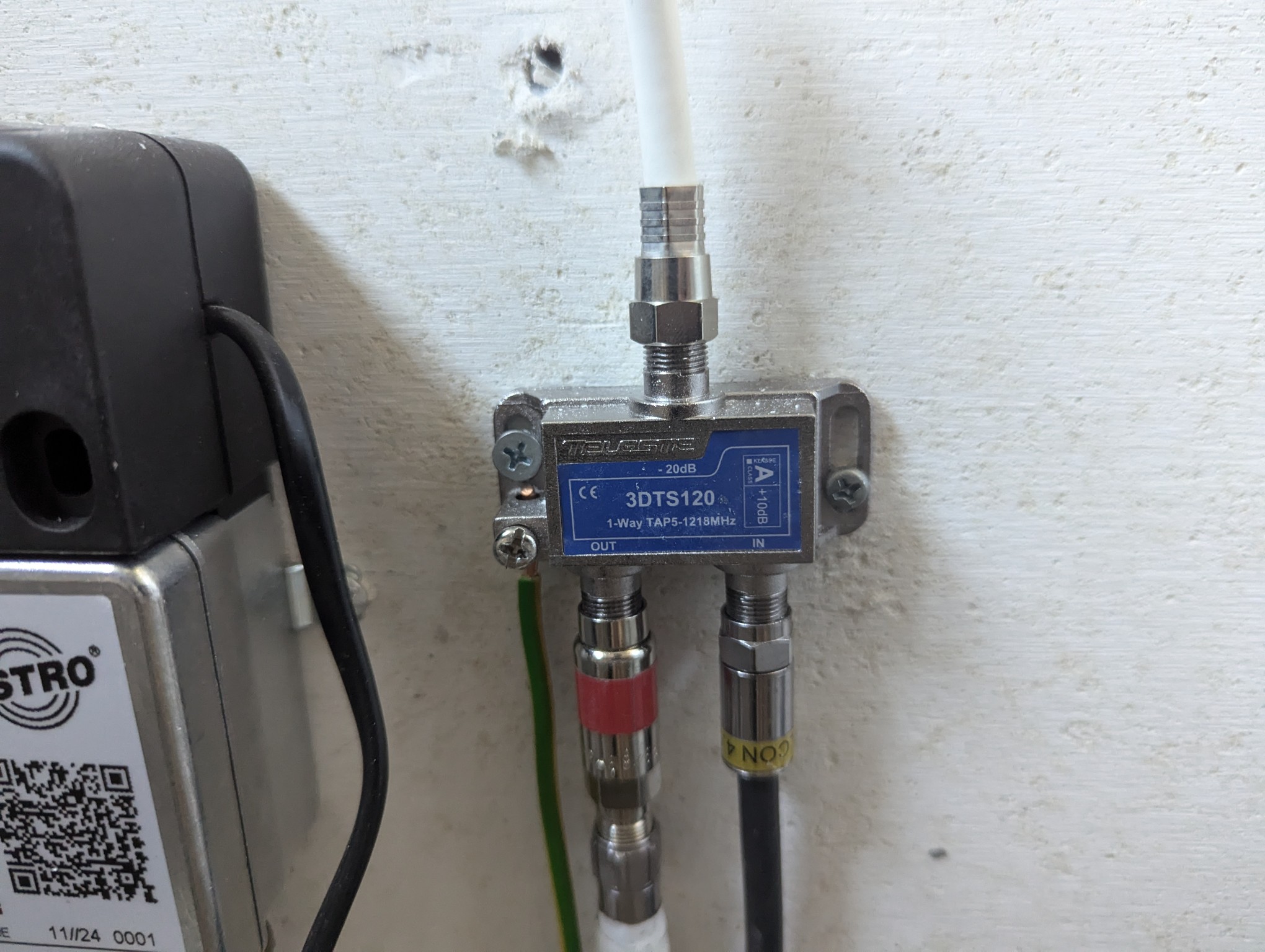 Da du die Fritzbox vermutlich direkt an den 20db Abgang geklemmt hast und es nicht funktioniert, nehme ich an da wir uns kurz nach dem Verstärker befinden, das die Empfangsrichtung vom Signalpegel her noch passen könnte, aber der Rückweg (Senderichtung) wird zu stark gedämpft sein, sodass sich die Box nicht einwählt. (das gleich passiert, nur andersrum, wenn das Signal zu stark ist - nur nebenbei)