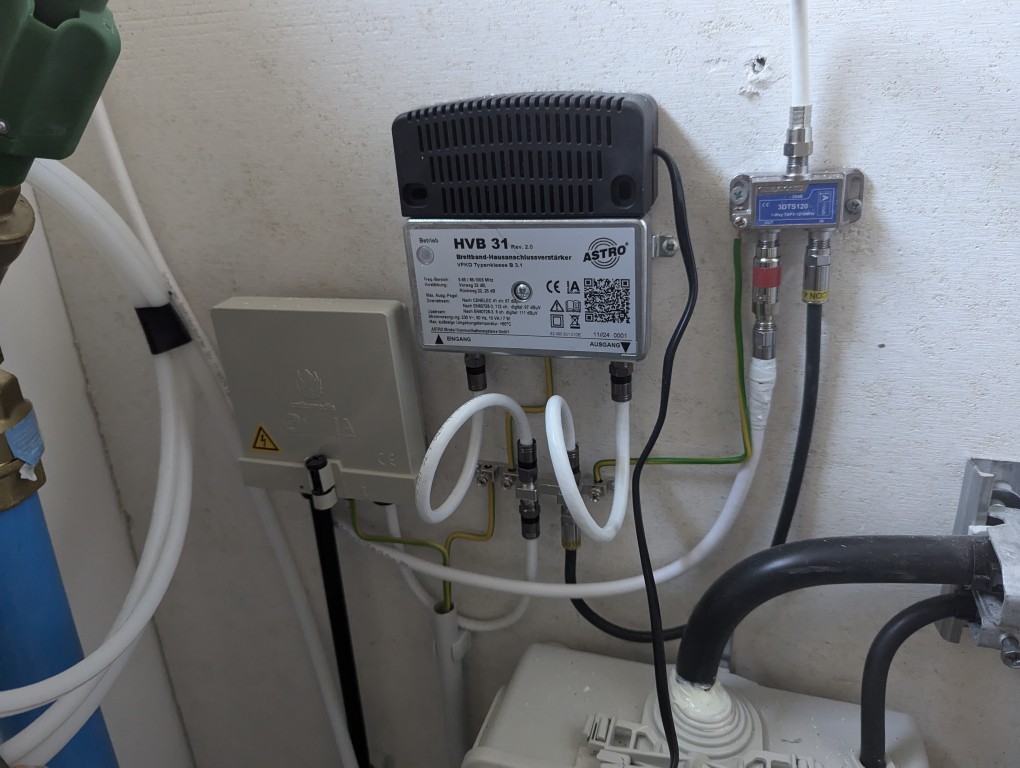 Ich habe ein Bild angehängt, wie der Anschluss im Technikraum bei uns aktuell aussieht.